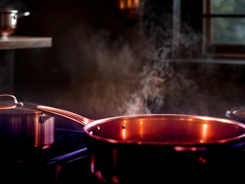- هدایت حرارتی فوقالعاده: مس بهترین رسانای حرارت در بین فلزات مورد استفاده در آشپزی است. این ویژگی باعث میشود حرارت به سرعت و به صورت یکنواخت در تمام سطح ظرف پخش شود و از سوختن یا نپختن یکنواخت غذا جلوگیری میکند.
