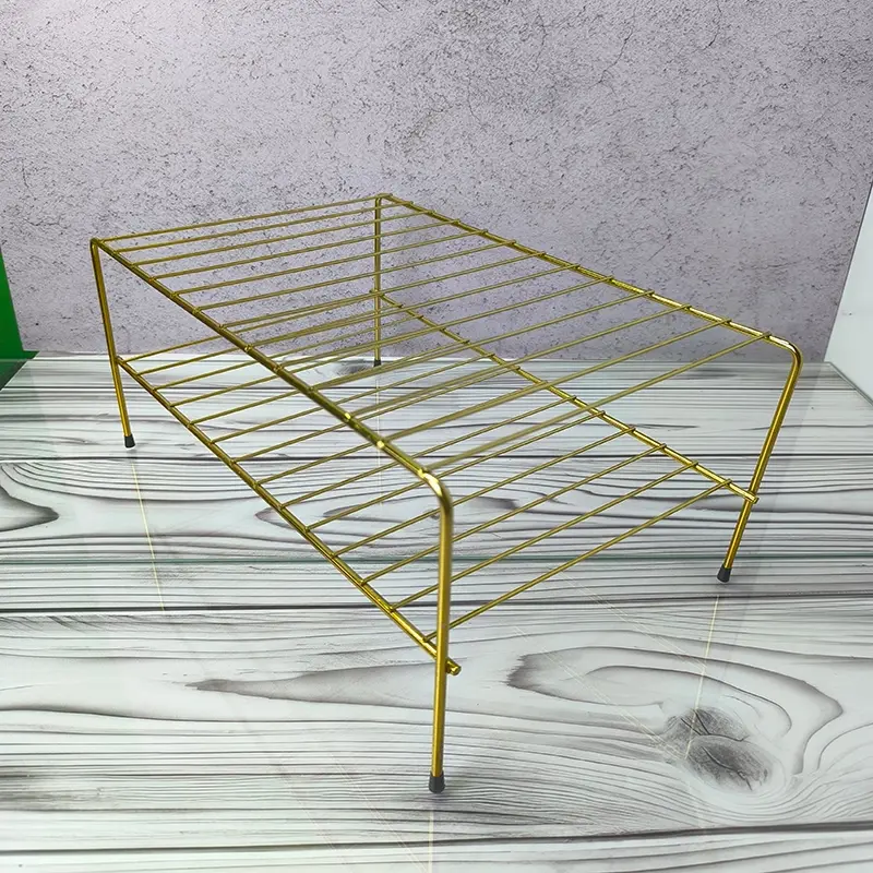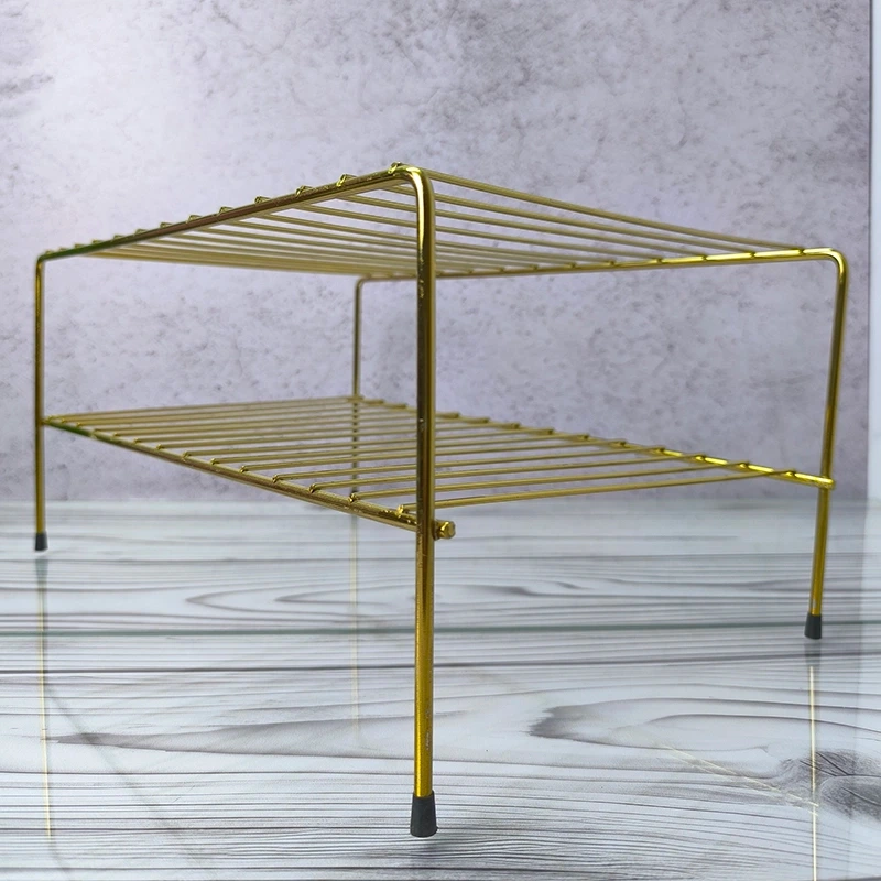 راف دو طبقه طلایی استیل | نظمدهنده کمجا و شیک برای هر محیط