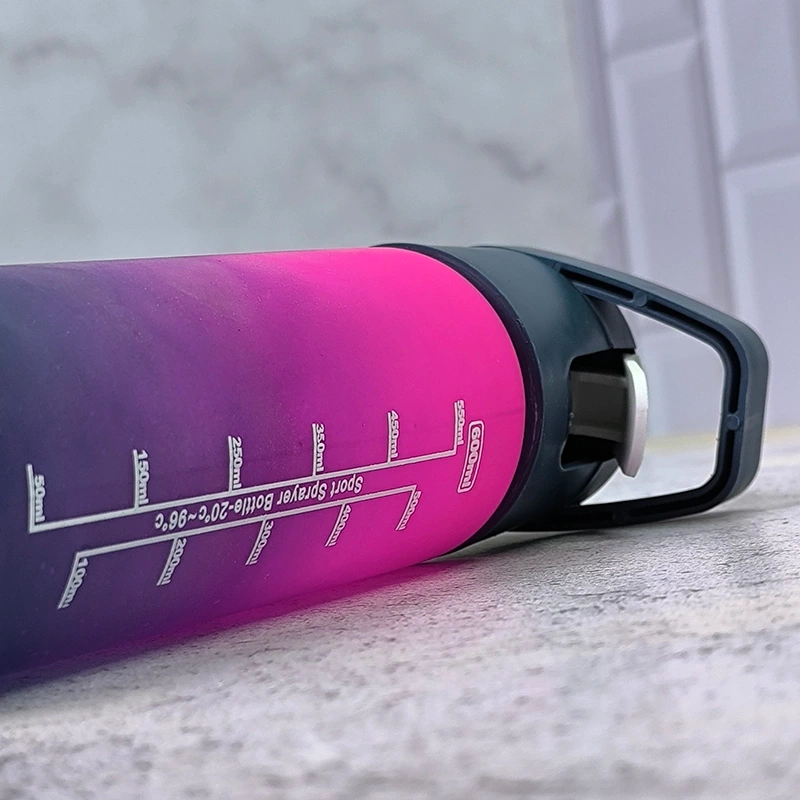 - حجم و ابعاد ایدهآل: حجم 600 میلیلیتر و ابعاد 6×6×26 سانتیمتر، بهراحتی در کیف یا کوله جای میگیرد.