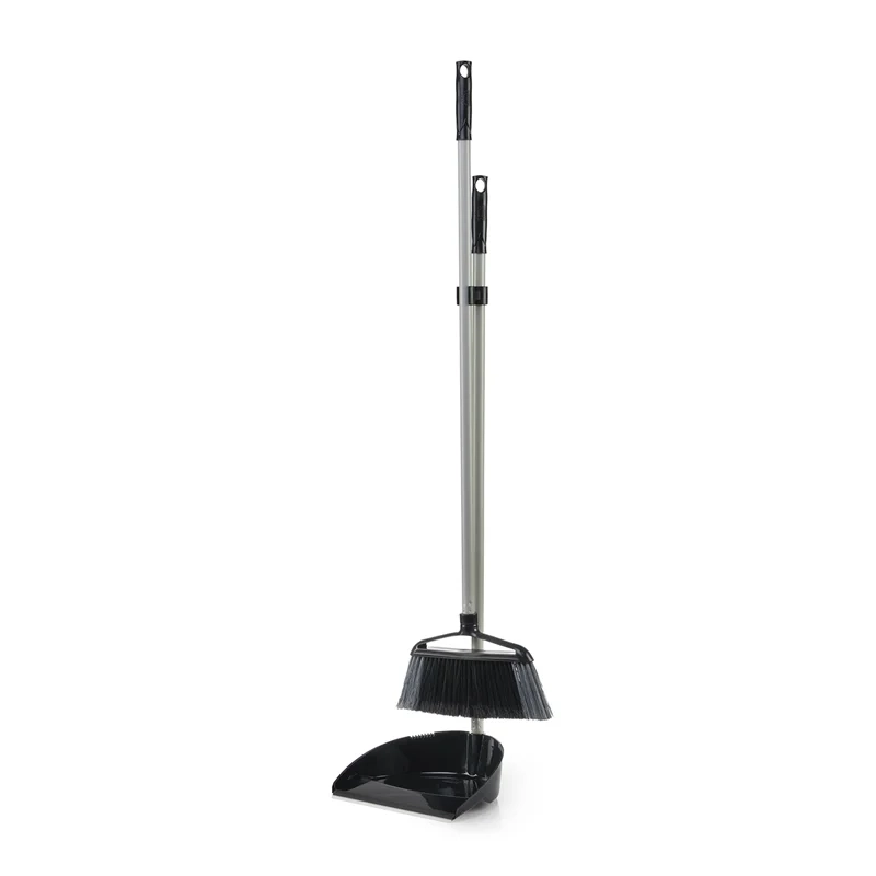 - قفل کلیکی برای نگهداشتن جارو: طراحی کلیکی بین جارو و خاکانداز، باعث میشود پس از اتمام کار، دو قطعه روی هم فیکس شوند و جای کمتری بگیرند.