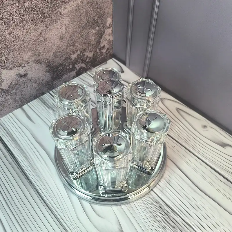 - جنس مقاوم و بهداشتی: اکریلیک مقاوم برای نگهداری ادویهها در شرایط بهداشتی.