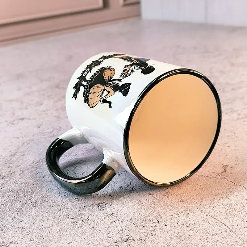 - طراحی شیک و لوستری: سطح لوستری و طرح رومی این ماگ، جلوهای جذاب و متفاوت به میز کار یا آشپزخانه شما میبخشد.