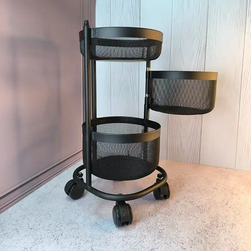 در مقایسه با سبدهای ساده و بدون طبقه، این محصول با طراحی سه طبقه و چرخدار بودن، امکان دسترسی راحت و نگهداری سالم سبزیجات را فراهم میکند.
